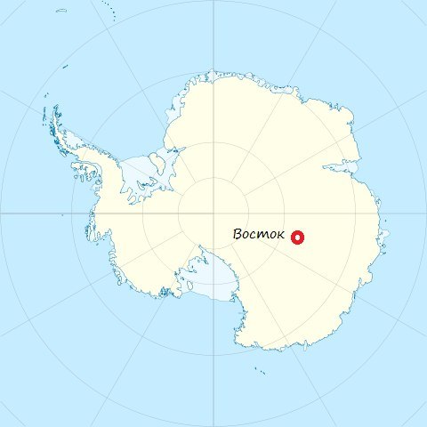 Толщина ледяного покрова под станцией 3700 м. (Источник: http://ru.wikipedia.org/)